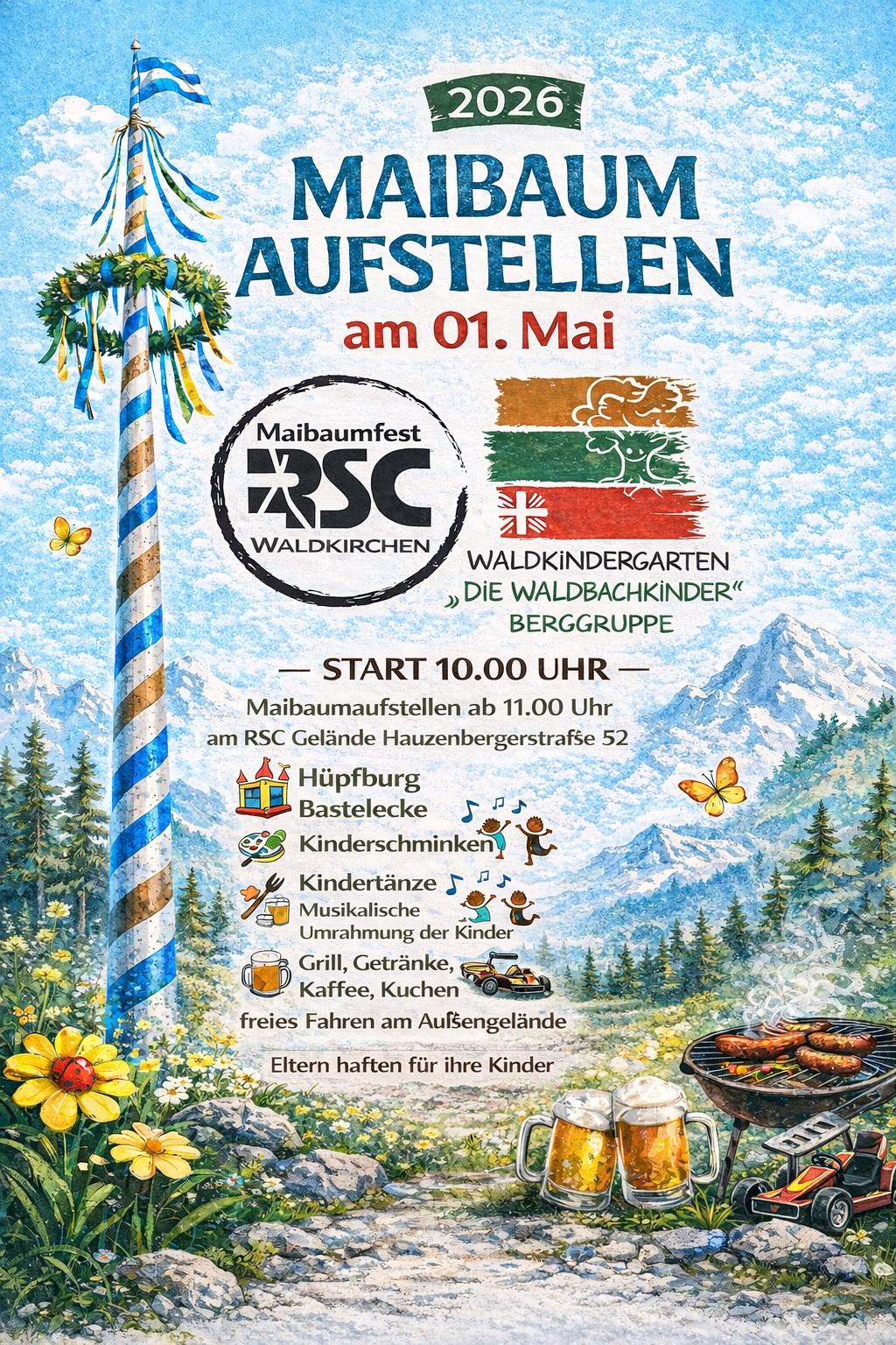 | 01.05.2026 | Alle | Maibaumaufstellen zusammen mit dem Waldkindergarten INFOS folgen mehr Infos |